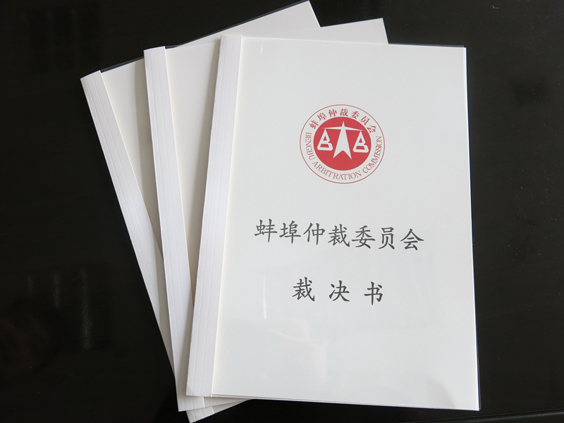 近日,蚌埠仲裁委员会对裁决书、调解书的装订进行了改进。不仅在原有的白色硬纸封面封底外面加装一层塑胶套,更将之前的传统胶粘方式转变改为热熔胶粘。改装后的裁决书看上去如同穿了“新衣”,令人耳目一新。